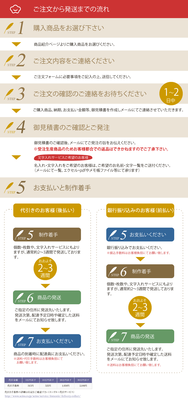 | ※迷惑メールフィルタ等により、こちらからの返信メールが届かない事がございます。 必ずnafudakake.comを受信許可設定の上、送信してください。2~3日たってもこちらからの返信がない場合は、お使いのメールソフトの迷惑メールフォルダをご確認頂くか、当店までお電話ください。 |